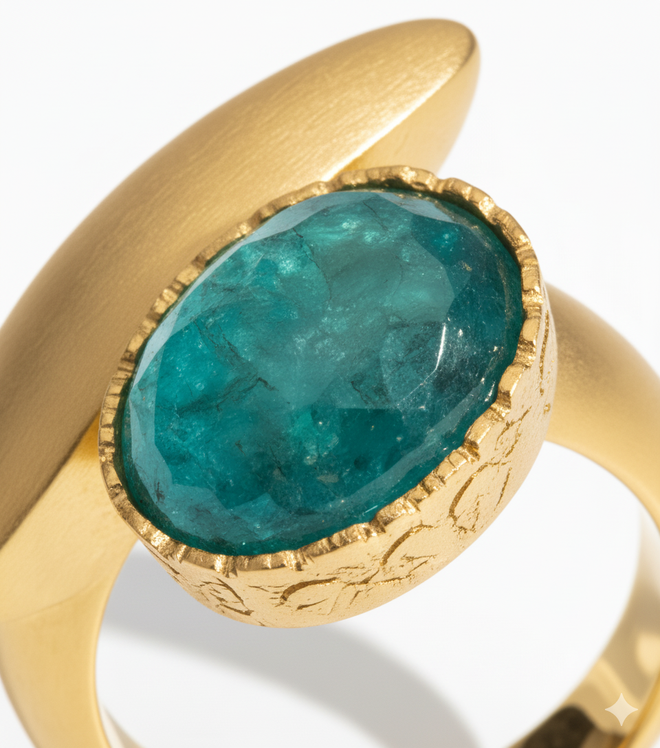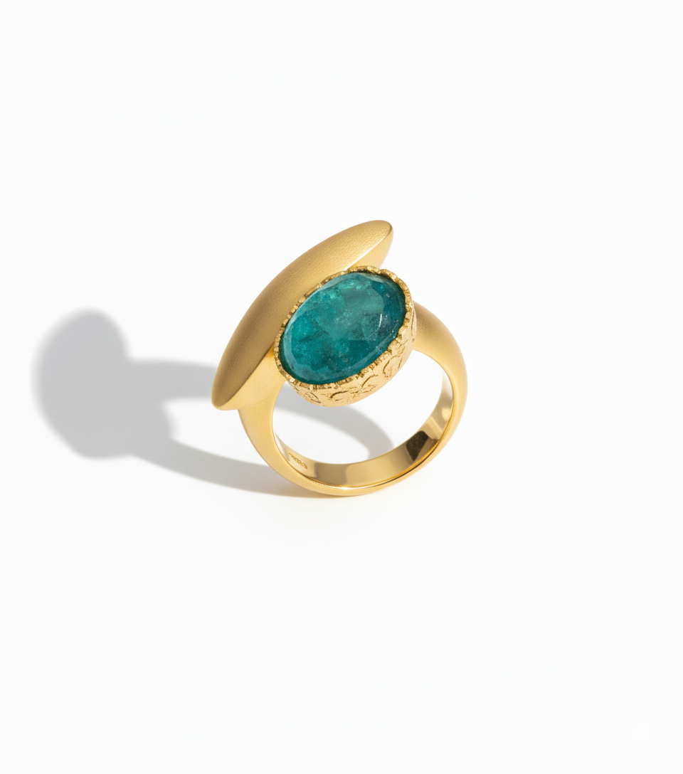 Inspired by the Greek word "Aithra," meaning clear sky and calm atmosphere, this exquisite ring is made from durable 925 sterling silver. At its center is a 100% natural blue apatite stone, shining with vibrant ocean-like colors that bring a touch of tranquility and elegance.