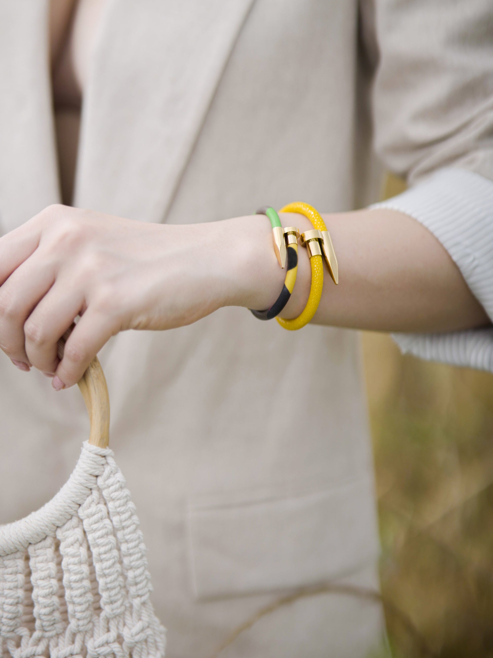 The 18k Gold-Plated Nail Emblem encrusted with the Luxury Colorful 5mm Genuine Leather makes you feel spoiled.
