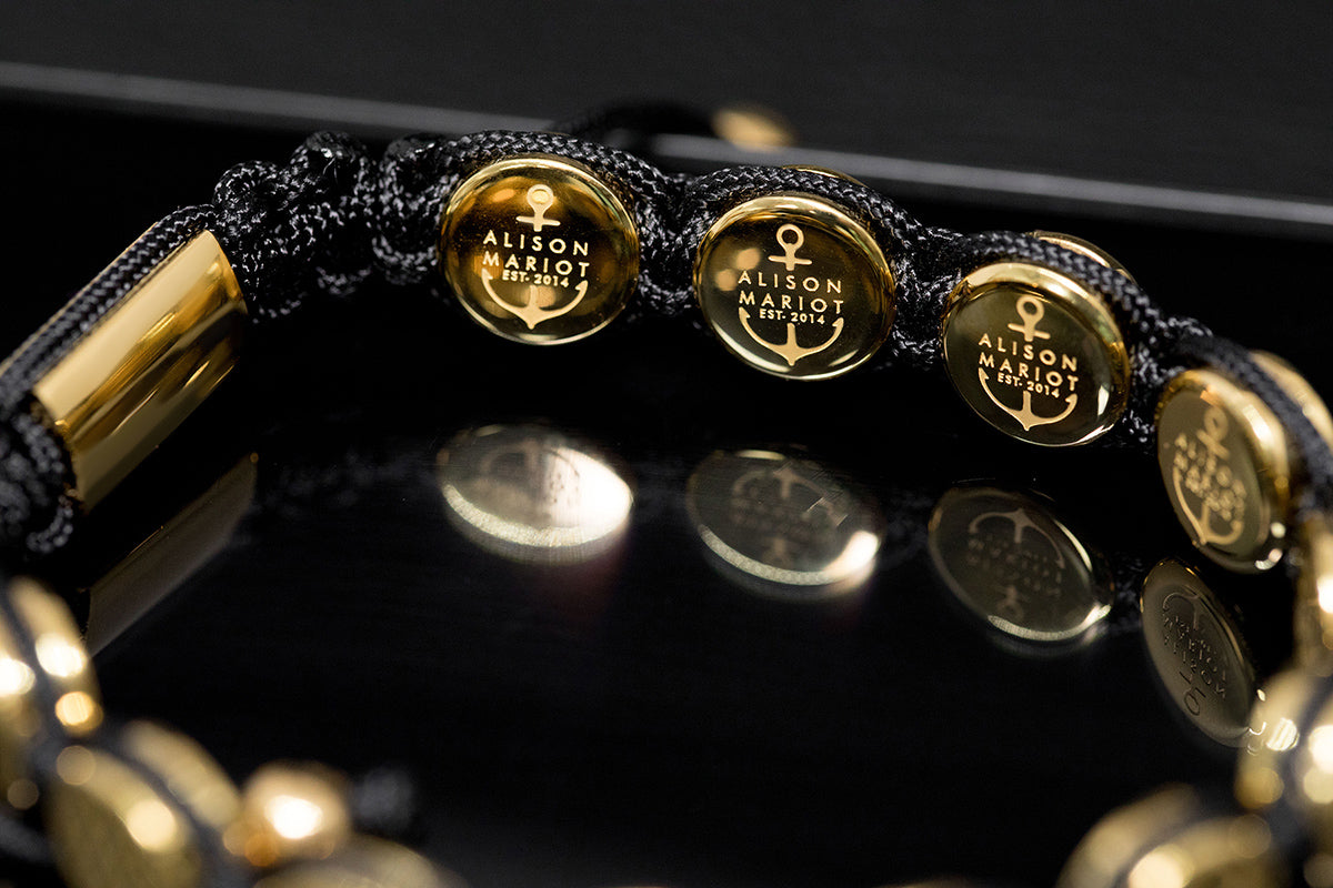 The bracelet opens by pulling the beads closest to the lock in opposite directions and closes by pulling the small, dangling gold beads in opposite directions.