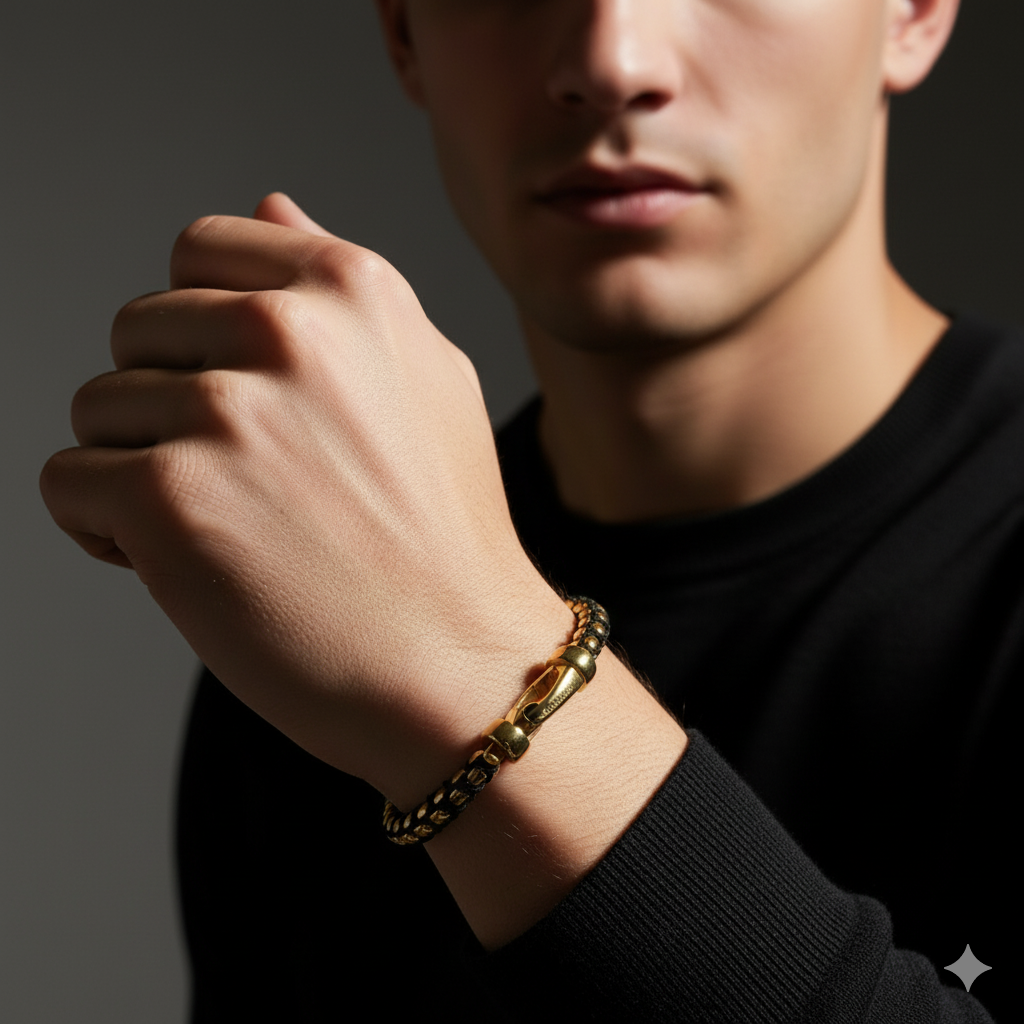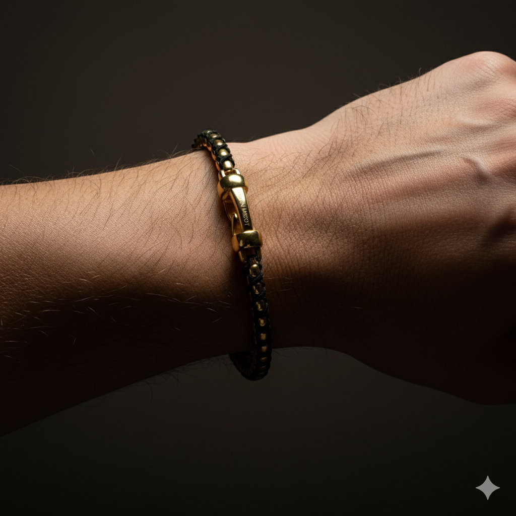 Luxe Neo Chain design is a contemporary interpretation of elements signature to Alison Mariot. Combinations of different metal finishes and design motifs define this bracelet.