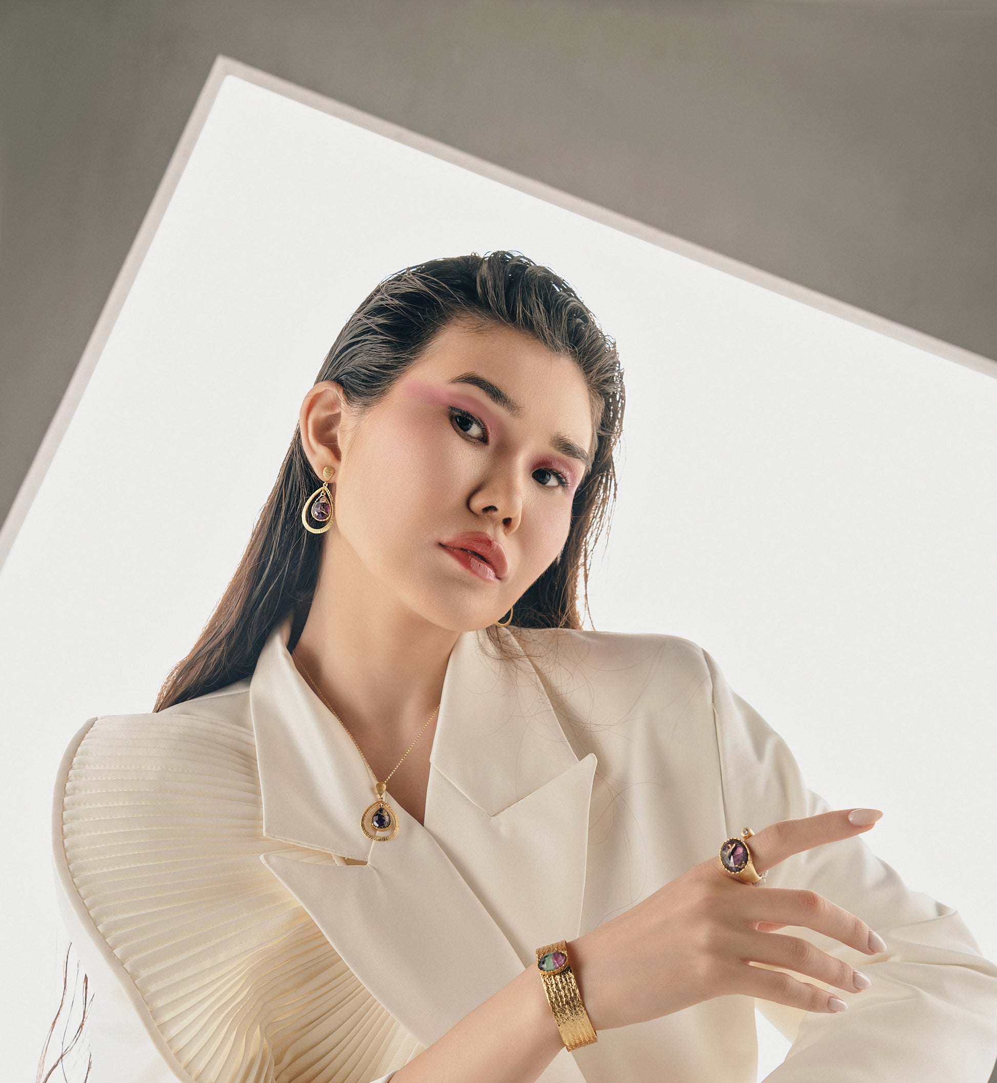 Nyssa Necklace evokes the mystery and allure of ancient Greece inspired by timeless elegance with a modern touch. Crafted from 925 sterling silver and plated in 18k gold, this necklace showcase a captivating 100% natural amethyst copper stone. The deep, rich hues of the amethyst blend harmoniously with the warm gold tones, creating a piece that radiates both strength and beauty.