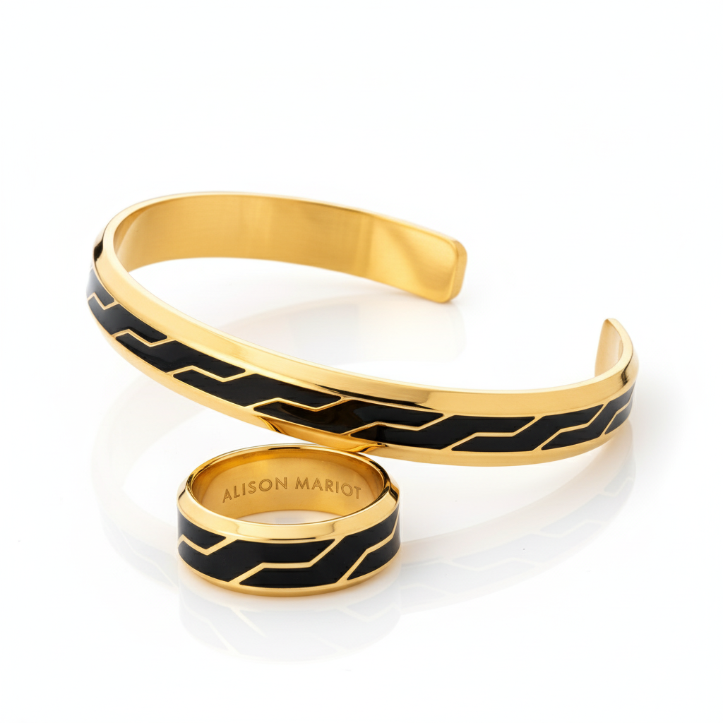 We proudly introduce our innovative design, UrbanTech Set. We pioneered a technique which fuses the modern material and precious metals into innovative, graphic designs.