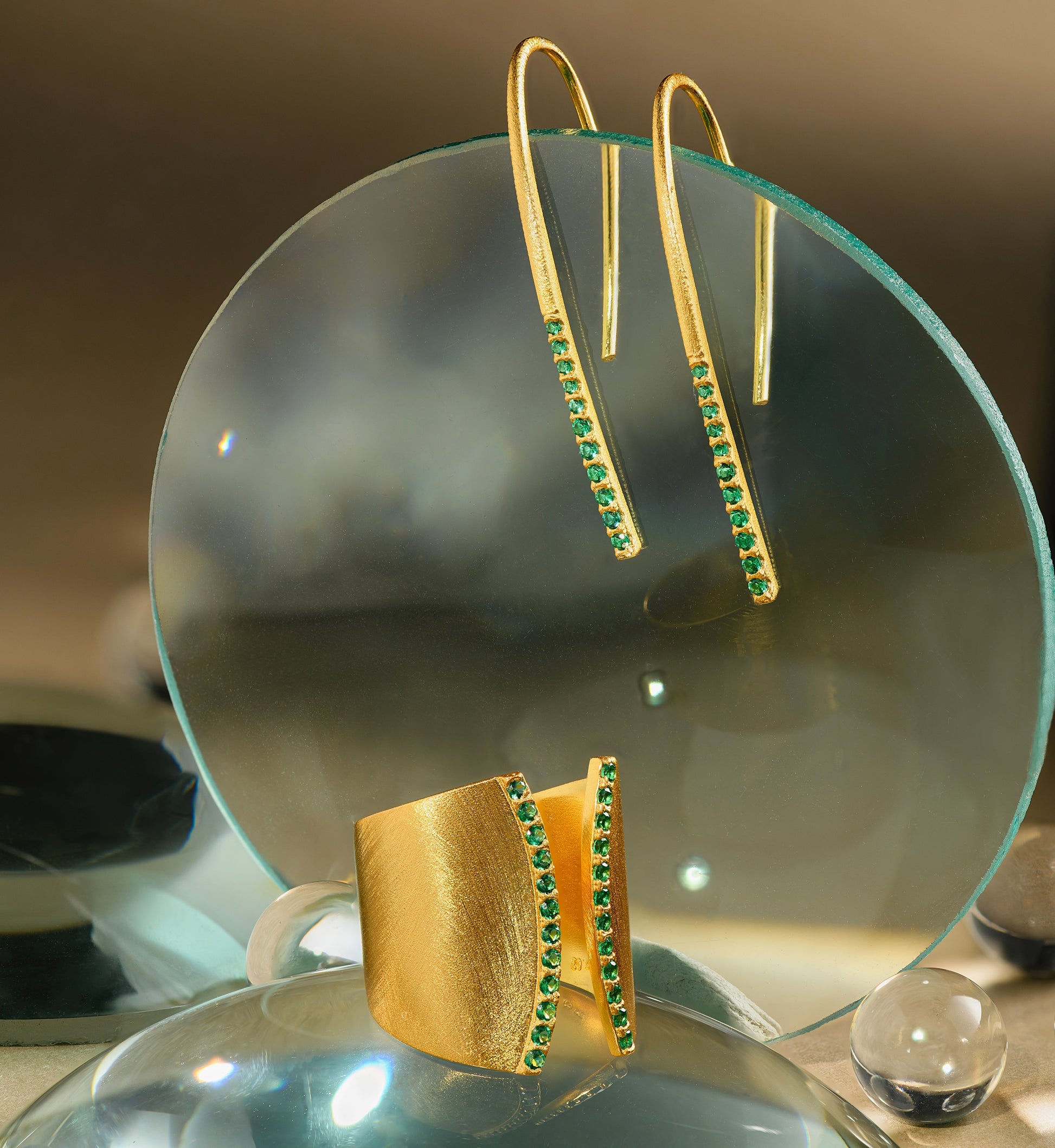 The Selenis Set embodies the strength and mystique of the moon, inspired by its gentle glow and protective nature. Crafted from 925 sterling silver and plated with 18k gold, this elegant piece is designed to make a statement. Adorned with finely set Swarovski crystals.