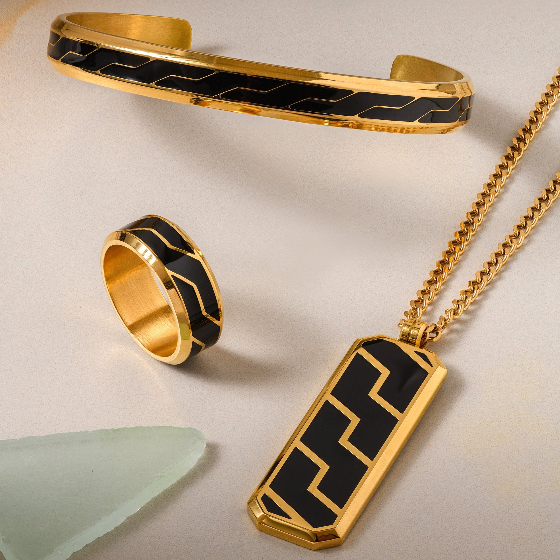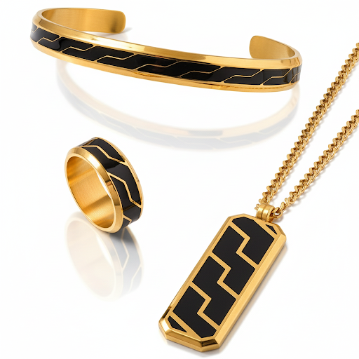 We proudly introduce our innovative design, UrbanTech Set. We pioneered a technique which fuses the modern material and precious metals into innovative, graphic designs.