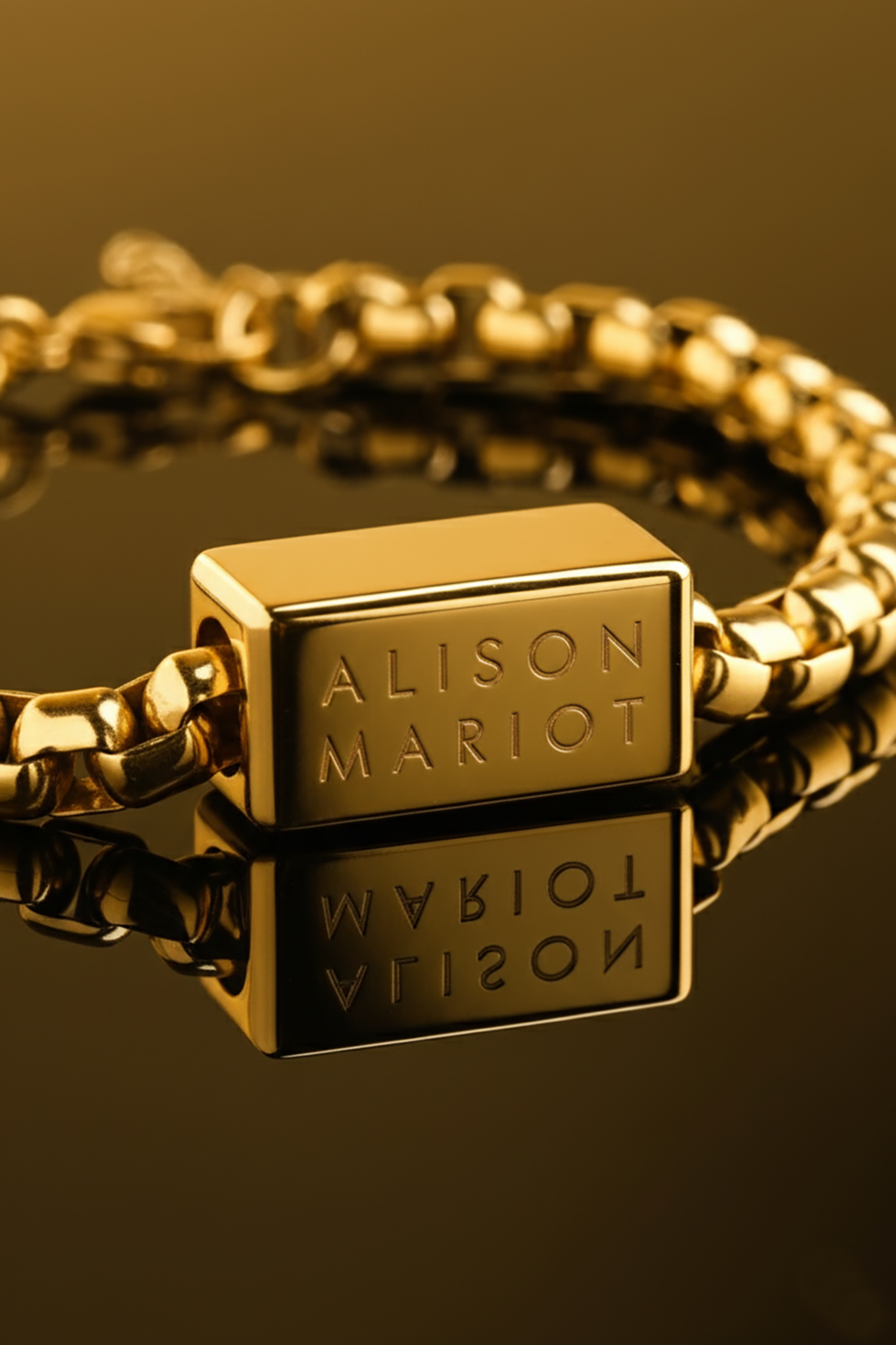 Punuar me përkushtim dhe mjeshtëri, pjesa e përparme e byzylykut është e gdhendur me logon Alison Mariot, duke shtuar një prekje origjinaliteti dhe autenticiteti. Kombinimi i linjave të pastra dhe strukturës së tij të qëndrueshme e bën këtë dizajn zgjedhjen ideale për çdo stil.