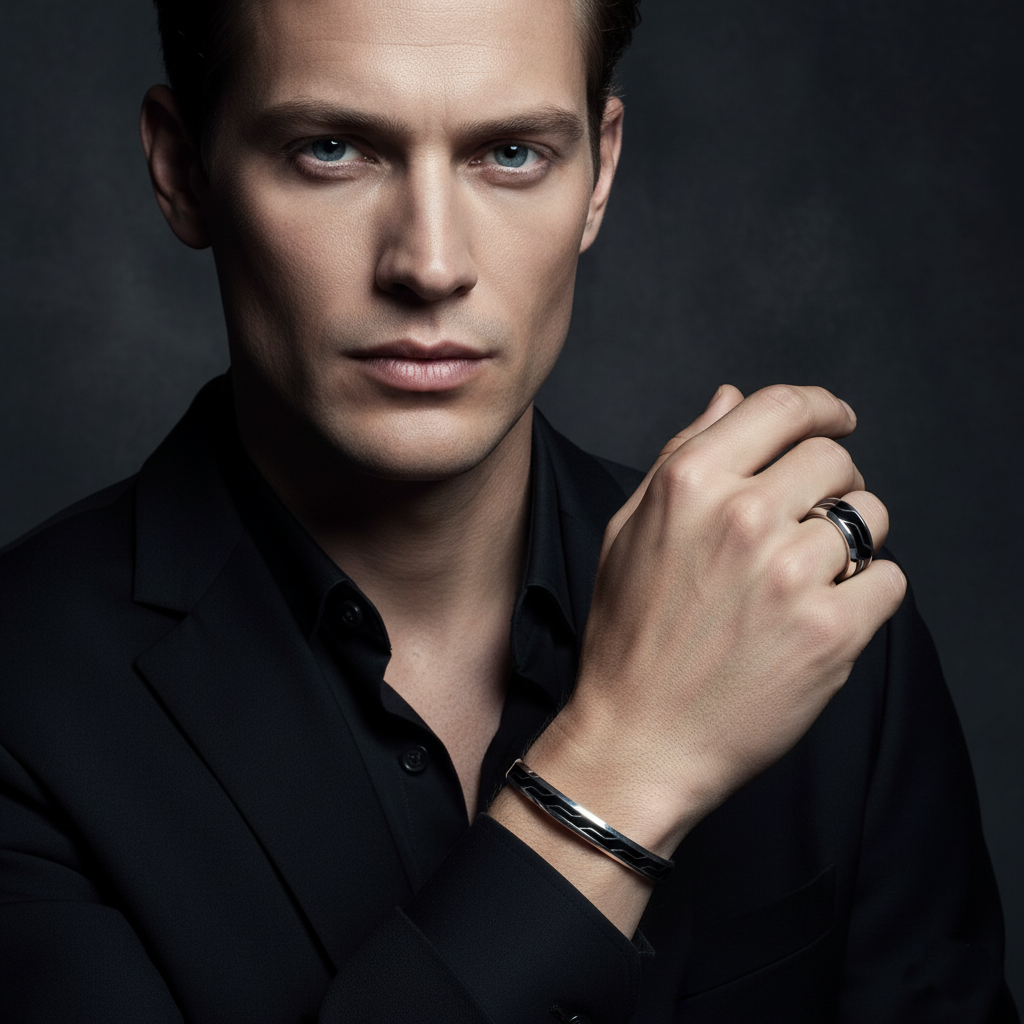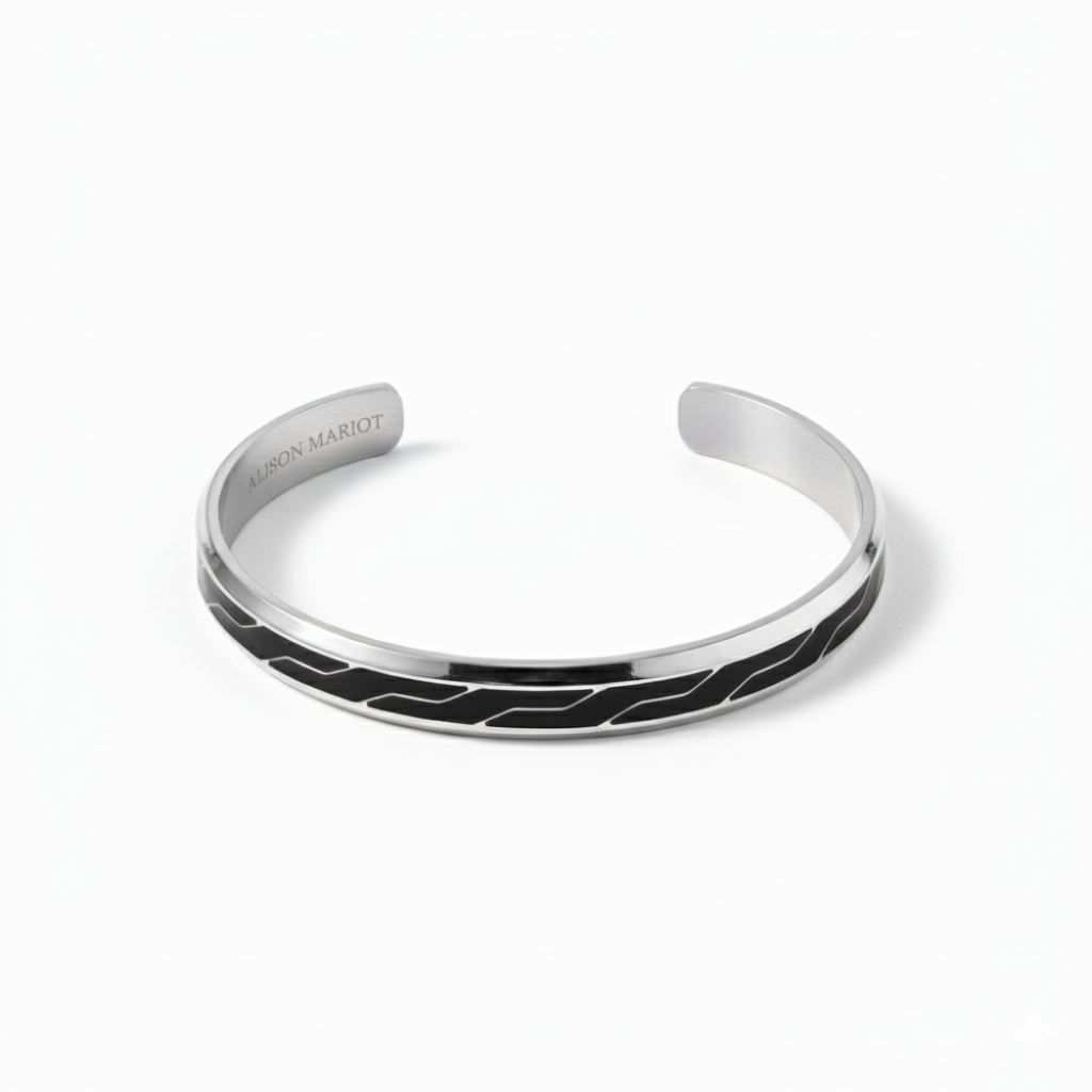 We proudly introduce our innovative design, UrbanTech Bangle. We pioneered a technique which fuses the modern material and precious metals into innovative, graphic designs.